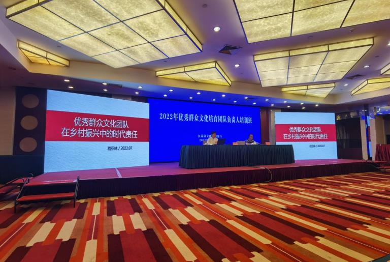 2022年7月29日至30日,江蘇省文化和旅游廳在南京“江蘇省會議中心”對全省205個優(yōu)秀文化團隊負責(zé)人舉行為期兩天的業(yè)務(wù)培訓(xùn)。牛首七星藝術(shù)團就是這次優(yōu)秀群眾文化培育對象,也是全江寧區(qū)唯一一家。