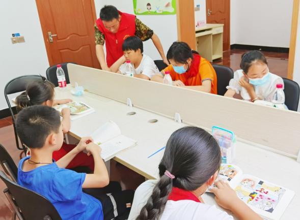 村委會志愿者通過循序漸進的方法引導(dǎo)、幫助孩子們開動腦筋逐一解決,并與孩子們分享了自己的一些解題思路與技巧,幫助他們更好地學(xué)習(xí)掌握,同時提醒孩子們針對于自己的薄弱點加強練習(xí)、掌握方法,在享受假期的同時要認(rèn)真對待暑假作業(yè),努力提高自己的學(xué)業(yè)成績。在每天幫助孩子們完成功課之后,志愿者還會與孩子們一起閱讀經(jīng)典名著、朗誦唐詩宋詞,開設(shè)繪畫園地……
