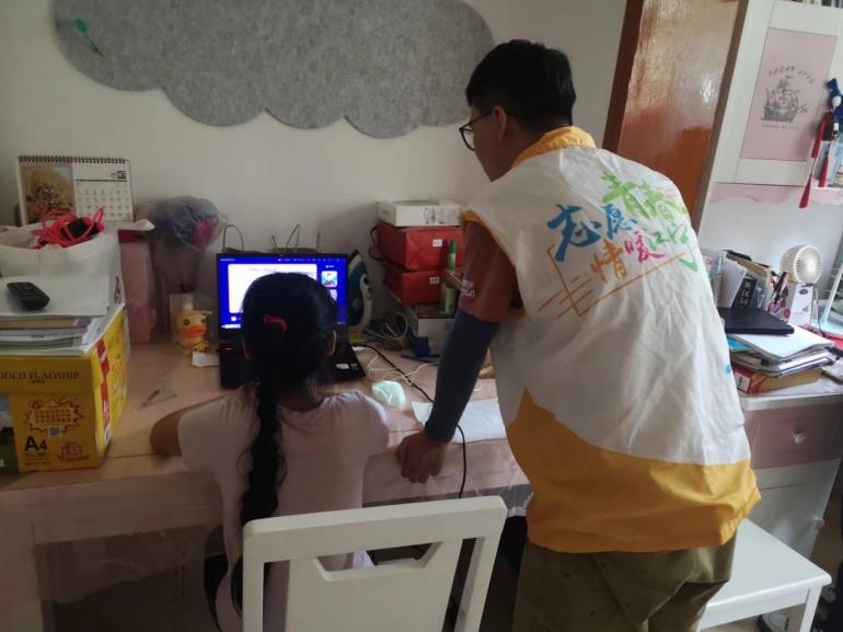 考慮到部分學(xué)生存在疑難問題,需要進行課業(yè)輔導(dǎo),社區(qū)志愿者來到孩子家中為他們進行作業(yè)答疑。針對孩子暑期作業(yè)中較為薄弱的地方,志愿者在其家中針對性為其梳理知識點,幫助孩子記憶理解。最為頭疼的暑期作業(yè)完成后,在志愿者的陪伴下,孩子們進入歡樂的游戲時間,共度一個美好的夏日時光。