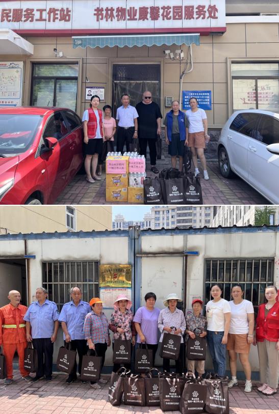 “熱心服務(wù),精心解難”“知百姓冷暖,為百姓謀利”“為民排憂(yōu)暖人心,抗擊疫情護(hù)人民”……一幅幅印著致謝詞的錦旗,和一面面榮譽(yù)牌一起,被物業(yè)公司送到了社區(qū),通過(guò)這些表達(dá)他們對(duì)社區(qū)工作人員在疫情防控工作中所做貢獻(xiàn)的感激之情。作為一種雙向的奔赴,社區(qū)準(zhǔn)備了礦泉水、飲料在內(nèi)的慰問(wèn)品,以及包括風(fēng)油精、花露水、人丹、毛巾等6樣物資在內(nèi)的防暑降溫禮包,送到了物業(yè)工作人員和志愿者的手上,希望在今后的工作中能夠繼續(xù)和物業(yè)工作人員、志愿者攜手,共創(chuàng)和諧家園。