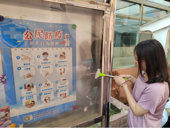 在連續(xù)多日的行動中,大學(xué)生志愿者們有的拿著鏟刀、墻刷等一些專用工具在社區(qū)內(nèi)巡視,對發(fā)現(xiàn)的社區(qū)路面燈桿、變電箱、圍墻、宣傳欄上的各種小廣告即可開始清理;有的拿著夾子不放過綠化帶內(nèi)的任何垃圾;有的則做好文明勸導(dǎo)員,在提醒居民電瓶車不要上樓的同時還擺正了小區(qū)內(nèi)亂停放的非機動車。