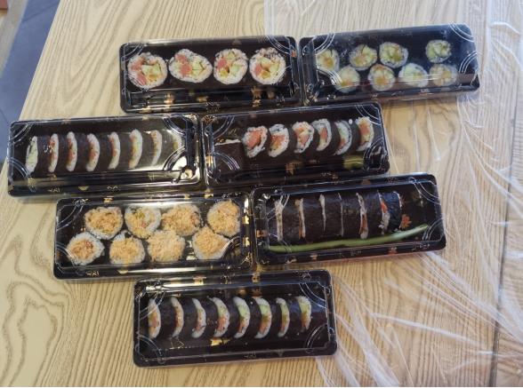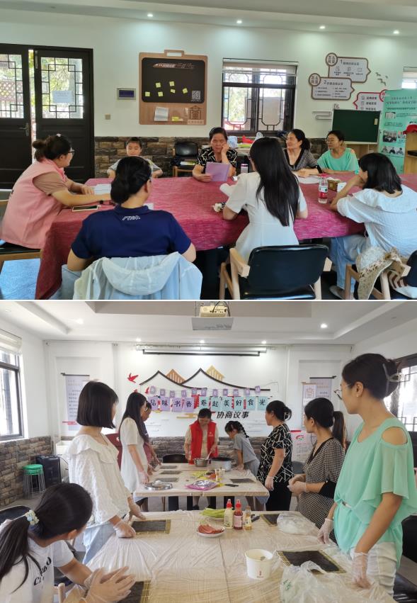 在結(jié)束閱讀分享會(huì)之后,社工老師又帶著大家學(xué)習(xí)制作便當(dāng)美食——紫菜卷。志愿者為大家提前準(zhǔn)備好了制作紫菜卷的食材,活動(dòng)之初,社工老師首先進(jìn)行了步驟示范。在社工的指導(dǎo)下,大家開始嘗試自己動(dòng)手——捏飯團(tuán)、攤上紫菜片,軟糯的米飯配上一點(diǎn)自己喜歡的食物和醬汁,再慢慢卷起,就好像卷起了生活的美好。細(xì)心的媽媽還將紫菜卷切成片狀,方便入口。如果出去野營(yíng)或者孩子春游帶上這裝滿愛的便當(dāng)應(yīng)當(dāng)是件幸福的事吧!
