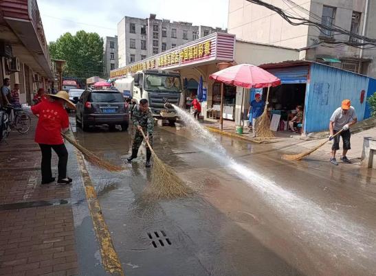 盡管正值炎熱夏日,仍消不退社區(qū)民兵開展志愿服務(wù)的熱情。江南廠社區(qū)民兵們拿著掃帚、梯子、抹布等清掃工具,來到轄區(qū)的大街小巷,充分發(fā)揮不怕臟、不怕累的精神,擼起袖子干得熱火朝天,耐心仔細(xì)地清掃路面、擦拭路燈、清理雜草和衛(wèi)生死角。清掃干凈后,民兵還指揮灑水車沖洗路面,不僅為轄區(qū)環(huán)境做了一次“深度清潔”,還讓周邊居民在炎炎夏日感受到一絲清涼。社區(qū)居民表示,“這么熱的天,民兵們還在外面堅(jiān)持清掃,我們社區(qū)的環(huán)境多虧了他們,才能變得這么整潔。”
