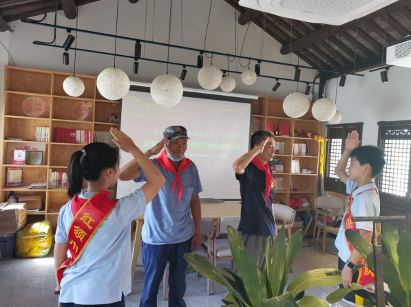 接著,少年隊員們?yōu)閺埮D明,佘義祥兩位退役老兵爺爺戴上紅領巾,獻上花束,聽著爺爺們講述著過去的故事。他們以多年的奉獻和堅守詮釋了軍人和黨員的擔當,他們身上不畏艱險、勇于奉獻的愛國精神令少先隊員們深受教育。