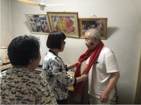 生日會(huì)上,工作人員、黨員志愿者和周爺爺一起唱響生日快樂(lè)歌,為老人打掃家中衛(wèi)生,給他戴上鮮艷的紅圍巾。喝著茶聊著天,伴隨著聲聲祝福的話語(yǔ),周爺爺樂(lè)得合不攏嘴。現(xiàn)場(chǎng),周爺爺也向大家分享著屬于他的幸福與快樂(lè):“我一生的幸福都是共產(chǎn)黨和國(guó)家給我的,給了我一個(gè)好時(shí)代,讓我可以擁有如此幸福的晚年生活。”