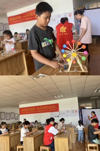 接下來,志愿者又向小朋友們詳細(xì)講解并示范了摩天輪制作步驟。孩子們嘗試著一步步進(jìn)行拆零件、組裝,安裝過程中遇到問題大家也一起互相之間進(jìn)行探討研究,互幫互助。最后在彼此的共同努力下,每個孩子都成功完成了屬于自己的“作品”,大家同時啟動開關(guān),五顏六色的風(fēng)輪轉(zhuǎn)動起來漂亮極了,一張張稚嫩的小臉蛋洋溢著自豪的笑容。