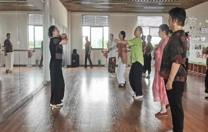 隨后,陶老師教授學(xué)員們學(xué)習(xí)的新舞蹈動作,老師一邊示范動作一邊給大家講解這支舞蹈需要注意的地方。在老師的帶領(lǐng)下,大家熱情高漲,認真學(xué)習(xí)每一個動作,仔細揣摩著自己的舞步和姿態(tài)。休息間隙,學(xué)員們還聚在一起,有的向老師請教動作細節(jié)的,有相互切磋指導(dǎo)的,大家力求把每個動作做到最完美。