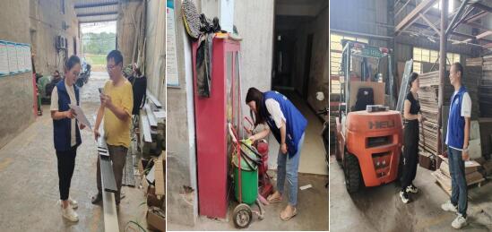 排查過程中,三位網(wǎng)格員各司其職。網(wǎng)格員方芳向企業(yè)負(fù)責(zé)人宣傳消防知識,推薦企業(yè)關(guān)注“南京消防”公眾號。端木和麗檢查企業(yè)手推式滅火器等消防設(shè)備是否準(zhǔn)確、齊全、有效,并逐一檢查壓力,瓶體,軟管,噴嘴及相關(guān)設(shè)施,不錯過一絲隱患。楊勇逐一檢查企業(yè)叉車操作員相關(guān)操作證書,提醒企業(yè)使用叉車時一定要注意安全,做好防范,并認(rèn)真及時登記等等。