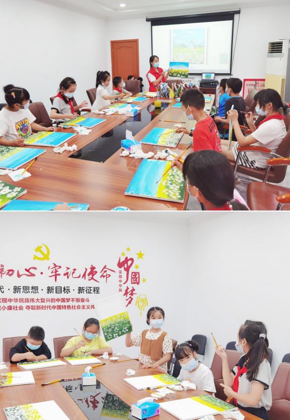 為了豐富轄區(qū)內(nèi)青少年的暑期生活,培養(yǎng)他們的繪畫能力和審美能力,8月30日下午,南京市江寧區(qū)淳化街道民主村新時代文明實踐站聯(lián)合關(guān)心下一代工作委員會和校外輔導站、街道社區(qū)教育中心和團支部,組織轄區(qū)內(nèi)青少年開展“七彩夏日 暑期創(chuàng)意水粉畫”主題活動。活動現(xiàn)場邀請了南京蘇米藝術(shù)張梅老師進行專題授課。