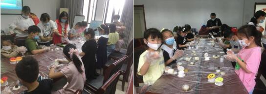 接下來,老師帶領(lǐng)青少年們自制月餅及月餅盒,大家圍坐在一起相互交流學習,經(jīng)過搟皮、放餡,揉、團、捏、壓等一系列操作,不一會兒,一枚枚精致的月餅便呈現(xiàn)在大家眼前,看著自己精心制作出來的月餅,青少年們欣喜地互相展示,拍照留念,呈現(xiàn)出一片歡樂的氛圍。