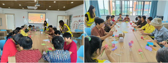 活動(dòng)期間,社區(qū)工作人員及志愿者帶領(lǐng)老人制作了手工花朵,以棒棒糖為花蕊,通過(guò)剪紙包成花朵。制作完成后,老人們一起將花朵送給了老教師們,并齊聲祝他們教師節(jié)快樂(lè)。參加活動(dòng)的老教師李老師今年74歲了,收到送去的手工花朵和祝福非常感動(dòng),她眼泛淚光的說(shuō)從未后悔做一輩子的人民教師,學(xué)生就是她這輩子最大的財(cái)富。同時(shí)李老師還受邀分享了任教期間與學(xué)生的故事,老人和志愿者們也跟著李老師的故事一會(huì)笑一會(huì)哭。
