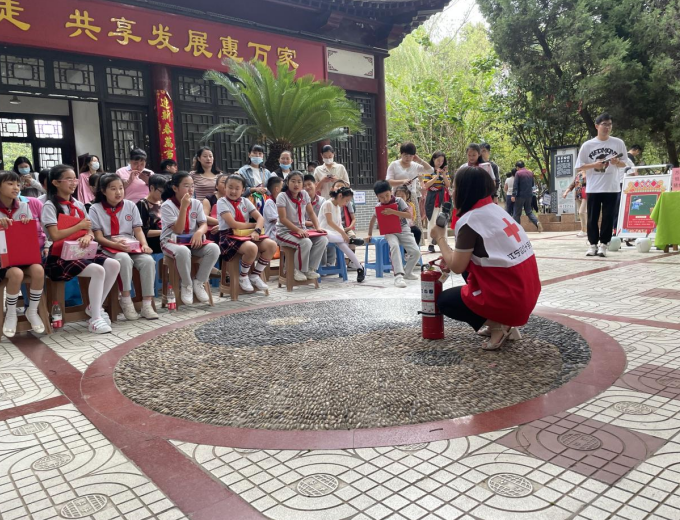 章村社區(qū)紅十字會工作人員通過通俗易懂的語言,向在廣場休閑的青少年們詳細講解了火災的起因、電氣火災防范措施、初起火災撲救辦法、正確撥打報警電話程序、火場逃生自救要領、滅火器材使用方法等消防安全常識。
