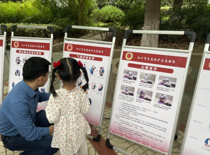 通過展板的形式向大家宣傳心肺復蘇的操作流程、氣道異物梗阻救治方法。活動現(xiàn)場家長們帶著孩子們認真學習,氣氛活躍,市民們表示以后如果遇到緊急情況,能更好的保護自己和能幫助別人。