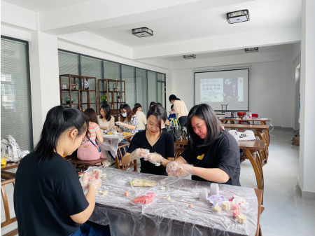月餅是中秋佳節(jié)團圓最應景的食品,自古中秋佳節(jié)就有吃月餅的習俗,大家也對接下來的月餅制作環(huán)節(jié)充滿了期待。雖然大家都是第一次自己動手制作月餅,但在大家一起分工合作的情況下,將面團和餡料揉成光滑的小球形狀,包餡、壓模、裝袋,每個動作都有條不紊,小巧精致、賣相極好的月餅就做好了。無月餅不團圓,大家迫不及待地品嘗起來,每一口都是濃濃的中秋情。