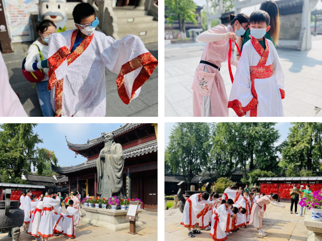 古語有言:“讀萬卷書,行萬里路。”為弘揚(yáng)中華民族優(yōu)秀傳統(tǒng)文化,讓兒童在實(shí)踐中認(rèn)知、感悟國學(xué)的精髓,9月17日,成山社區(qū)組織轄區(qū)的孩子們走進(jìn)夫子廟大成殿,開展國學(xué)文化研學(xué)之旅,學(xué)習(xí)儒家禮儀,禮拜夫子,沉浸式體驗(yàn)非遺文化,通過學(xué)旅融合,讓孩子們對(duì)中華優(yōu)秀的傳統(tǒng)文化有更多的了解和傳承。