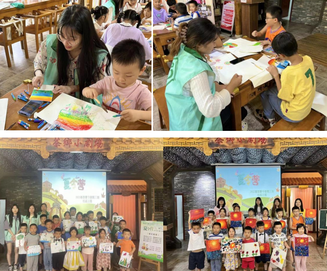 南工程實踐團成員們在牌坊村暑期夏令營活動中擔任繪畫老師,為青芽們開展以茶鄉(xiāng)、大自然為主題的一系列繪畫課堂,不僅進行了生動的知識普及宣講,還手把手教小青芽們創(chuàng)意繪畫,讓青芽們度過一個生動豐富、特色有趣的假期。