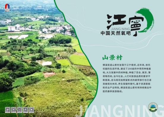 山景村坐落于江寧南郊,山清水秀,景色怡人,近年來依托優(yōu)越的生態(tài)環(huán)境,建設了200畝的中草藥種植基地,大力發(fā)展中藥材種植,種植了百合、紫蘇、薄荷等藥材。2021年1月,被江蘇省生態(tài)環(huán)境廳命名為第三批江蘇省生態(tài)文明建設示范鎮(zhèn)村?;谫Y源稟賦和農業(yè)產業(yè)特色,山景村將持續(xù)推出中醫(yī)藥康養(yǎng)旅游路線,以觀光休閑、養(yǎng)生保健為主,滿足人們對旅游品質不斷提高的要求。