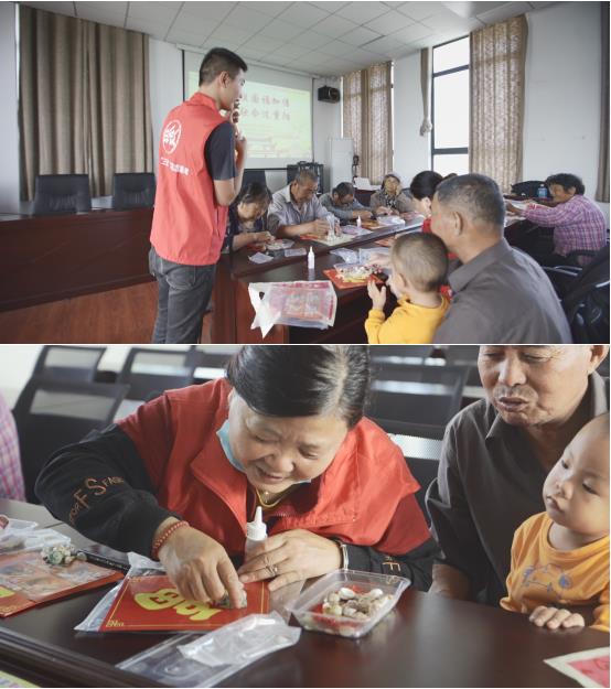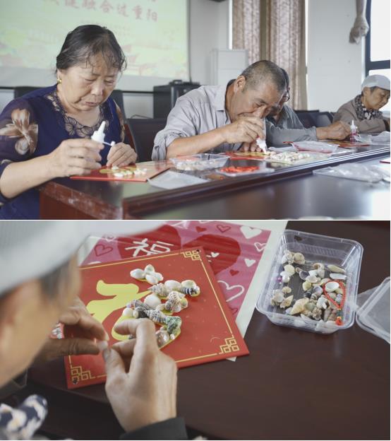 生活在幸福美滿的新時(shí)代,就是要把“福”掛在身邊。在社工的組織下,殘疾人給鎏金福加上貝殼,取其“福加貝,加倍福”的美好寓意。點(diǎn)綴上一個(gè)昌螺,祝福祖國昌盛不衰;點(diǎn)綴一個(gè)米螺,祝福祖國富足安康;再點(diǎn)一個(gè)織錦螺,祝福祖國繁花似錦;國與家是不可割舍的相連體,加上珍珠,愿家人好運(yùn)不斷;加上綠嶸螺,愿家庭基業(yè)長青;再加仙女貝,愿生活幸福美滿……在充滿吉祥寓意的創(chuàng)作里,一片片加貝福逐漸映入眼簾,再系上中國結(jié),更襯節(jié)日的美好。在《祝福祖國》的背景樂里,大家手持加貝福,把祝福說盡,把佳話說滿,愿快樂幸福生活每一天。