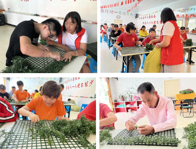 現(xiàn)在中國(guó)內(nèi)地都在推行垃圾分類等各項(xiàng)環(huán)保措施,而君子之家的殘疾人們也想為這個(gè)地球做些什么,從而引進(jìn)了這項(xiàng)手工。“綠色”永遠(yuǎn)是我們生活環(huán)境的代名詞,制作手工草坪不僅可以很好地鍛煉殘疾人的耐心,對(duì)于視覺(jué)也沒(méi)有什么傷害?;顒?dòng)開(kāi)始,機(jī)構(gòu)工作人員示范如何規(guī)范地將小草插入模具中,并一步一步耐心引導(dǎo)服務(wù)對(duì)象動(dòng)手制作,志愿者也在一旁用心指導(dǎo),傳授著制作的方法與技巧,待大家都掌握了種植方法后,開(kāi)始了一場(chǎng)激烈的手工競(jìng)賽活動(dòng),伴隨著一聲聲吶喊加油,殘疾人你追我趕,在保證了產(chǎn)品質(zhì)量的同時(shí)紛紛加快速度,競(jìng)賽分成小組進(jìn)行,每個(gè)組員都盡自己最大的努力加油著,貢獻(xiàn)了自己的一份力量。