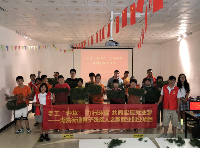 南京市江寧區(qū)湖熟街道君子殘疾人之家“手工‘種草’力行環(huán)保 共同實(shí)現(xiàn)就業(yè)夢(mèng) ”輔助性就業(yè)項(xiàng)目是通過(guò)小草種植為基礎(chǔ),動(dòng)手栽種,提升殘疾人動(dòng)手動(dòng)腦能力。該項(xiàng)目主要通過(guò)機(jī)構(gòu)輻射帶動(dòng)新農(nóng)社區(qū)以及河北社區(qū)的殘疾人,從“教學(xué)培訓(xùn)、手工競(jìng)賽”兩個(gè)方面進(jìn)行。通過(guò)手工教學(xué),讓殘疾人掌握作業(yè)方法,并進(jìn)行相關(guān)競(jìng)賽活動(dòng),讓手工操作更具積極性、趣味性。殘疾人可將草坪領(lǐng)回家,實(shí)現(xiàn)居家就業(yè),從而領(lǐng)取相應(yīng)的勞動(dòng)報(bào)酬,自立自信自強(qiáng)的生活。