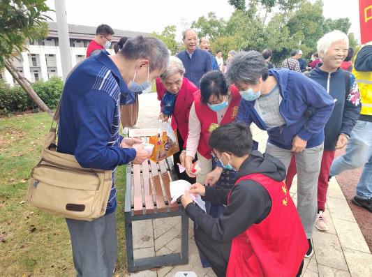 此次活動通過掌上云社區(qū)群發(fā)布通知,當(dāng)天早上九點,大家準(zhǔn)時在姚坊門文體公園入口集合,充滿熱情。到達(dá)后,社區(qū)黨總支為每一位老人發(fā)放重陽節(jié)祝??ㄆ龑?dǎo)大家安全登高。堯安新村社區(qū)黨員們大多是年過六旬的老黨員,但大家登高的勁頭絲毫不亞于年輕人,各個步伐穩(wěn)健,走在蜿蜒的石階上,一邊欣賞著沿途的堯化金秋的美景,一邊聊聊著近年來的變化,一路上充滿著歡聲笑語,不一會便成功登上坡頂。