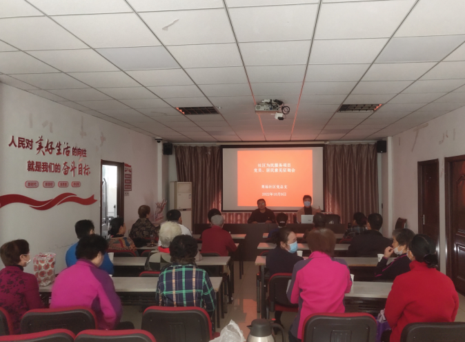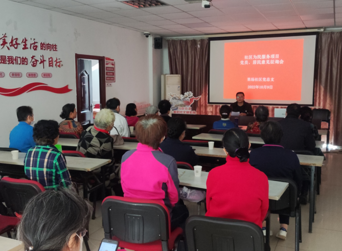 2022年10月9日,果場社區(qū)黨總支在社區(qū)三樓活動室,組織社區(qū)黨員、居民就來年為民服務(wù)項目開展民意征詢,征集廣大社區(qū)黨員、居民意見,確定篩選2023年社區(qū)為民服務(wù)項目。