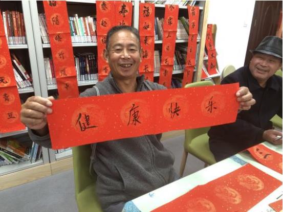 活動現(xiàn)場氛圍熱烈,圍觀的居民也想過過手癮,字不好看不要緊,重在參與。“健康快樂最重要,多寫幾張送給大家!”李大爺興致勃勃地給在場所有人送上了祝福。