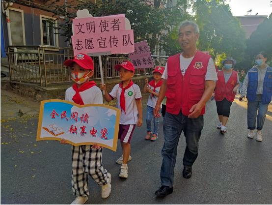 隨后,未成年人們深入轄區(qū),舉著全民閱讀手牌到勝利一村、勝利二村、勝利三村向居民們宣傳全民閱讀的意義,讓更多的居民根據(jù)自己的興趣愛好利用業(yè)余時間讀書學(xué)習(xí),不斷豐富精神文化生活,從而提高轄區(qū)的整體素質(zhì),為創(chuàng)建和諧、文明社區(qū)打下堅實(shí)的基礎(chǔ)。