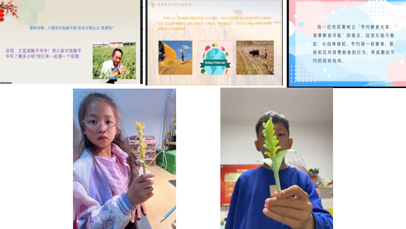 活動(dòng)主要分為四個(gè)環(huán)節(jié)。首先呂雅楠同學(xué)問(wèn)小朋友們知道哪些關(guān)于糧食的詩(shī)句以及看圖猜糧食的小游戲,知識(shí)豐富的小朋友們都爭(zhēng)先恐后的搶答。緊接著志愿者向小朋友介紹了我國(guó)的雜交水稻之父袁隆平。引入了世界糧食日的主題。接著,呂雅楠同學(xué)向小朋友們介紹了世界糧食日的設(shè)立以及歷史。為了讓節(jié)約糧食的觀念更加深入人心,她還舉了一些世界性饑荒的例子。隨后,她向小朋友們提問(wèn),應(yīng)該如何去解決這樣的問(wèn)題呢。小朋友們的回答都非常精彩。志愿者將他們歸納成了兩個(gè)方面,一方面需要官方的努力。另一方面需要我們每一個(gè)人的努力。因此,她向我們發(fā)出號(hào)召,要從自己做起,做一個(gè)節(jié)約糧食的人。最后,就是小朋友們大顯神通的手工環(huán)節(jié)啦。由老師帶領(lǐng),一步步教小朋友們做出了屬于自己的小水稻。一個(gè)個(gè)雀躍的臉龐都貼在鏡頭前,揮舞著自己的小水稻。