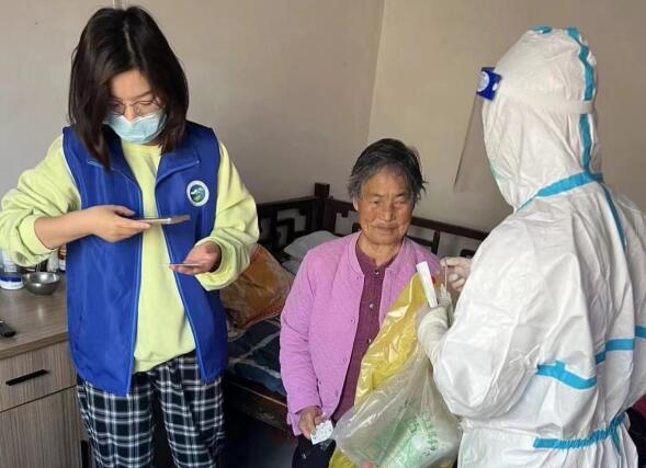 村001網(wǎng)格員端木和麗,負責帶領谷里衛(wèi)生院支援醫(yī)生給老弱病殘上門逐戶做核酸。