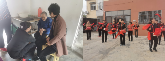 為了能讓社區(qū)高齡失獨(dú)老人或行動(dòng)不便的高齡老人也打開心扉、感受到生活的喜悅,青龍社區(qū)的10位老人志愿者走進(jìn)他院子,用腰鼓傳遞溫暖和快樂。彭奶奶95歲高齡,由于身體原因腿腳不太利索,很久很久沒有走出家門,志愿者謝阿姨握住彭奶奶的手,真誠祝福彭奶奶身體健康長命百歲。彭奶奶激動(dòng)地表示,“家里很久沒有這么開心了!”