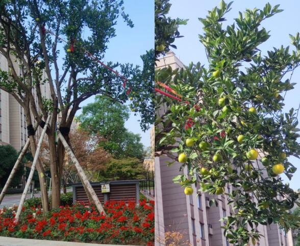 金秋十月,丹桂飄香,正是橙黃橘綠時,位于石埠灣小區(qū)云霞居大門口的桔子樹成熟了。進入云霞居北門,這棵大桔樹就映入人們眼簾,該桔樹源于棲霞街道龐家圩拆遷戶人家,經(jīng)石埠灣物業(yè)工作人員先后七八次移入云霞居3幢路口處。在石埠灣物業(yè)人員的精心護養(yǎng)下,桔子逐漸成熟了,黃澄澄的桔子掛在枝頭,像一盞盞小燈籠,十分引人注目。