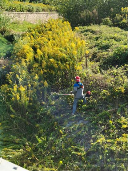 經(jīng)巡查發(fā)現(xiàn),轄區(qū)黃馬撇鴻溝河道中也出現(xiàn)了大面積“一枝黃花”,對(duì)此,社區(qū)志愿者們和河道清理人員拿著專(zhuān)業(yè)鏟除器械將其進(jìn)行了清理。