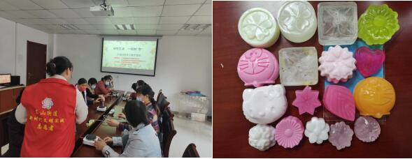 現(xiàn)場(chǎng),志愿者詳細(xì)地為大家講解了香皂的制作方法、制作原料與制作工具等相關(guān)內(nèi)容,并將制作材料按照溶解、調(diào)色、攪拌、注模、風(fēng)干、脫模等步驟一一向大家演示,現(xiàn)場(chǎng)示范香皂的制作過程。隨后,在志愿者的幫助和指導(dǎo)下,居民們根據(jù)自己的喜好,分別選擇了各種不同形狀的模具和不同功效、味道的精油進(jìn)行了手工創(chuàng)作。制作過程中,大家相互交流,互相幫助,現(xiàn)場(chǎng)歡聲笑語不斷,不一會(huì)兒,一塊塊造型可愛、清新怡人的香皂相繼出模。大家欣喜地相互分享展示,并表示這樣的活動(dòng)十分有趣,希望接下來社區(qū)能夠多多舉辦此類活動(dòng)。