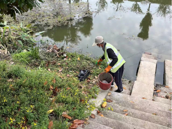 “社區(qū)衛(wèi)生服務(wù)中心附近的河道有漂浮垃圾需要清理,我在這邊等你過來。”11月10日,南京市江寧區(qū)淳化街道周子村黨總支書記熊宣文在進行日常河道巡查時,發(fā)現(xiàn)存在漂浮垃圾清理不及時的情況,立即安排保潔人員進行清理。