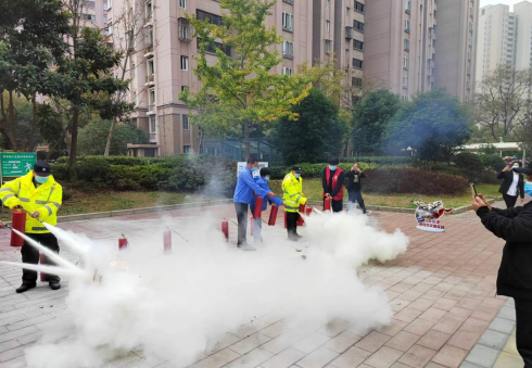 現(xiàn)場講解并演示了消防器材使用方法和用途。在事先準(zhǔn)備好的桶內(nèi)點(diǎn)燃火源,物業(yè)和社區(qū)工作人員輪流使用滅火器進(jìn)行滅火,切身體驗(yàn)了滅火器撲滅火源的過程,讓大家熟練掌握滅火器的使用方法和注意事項(xiàng)。