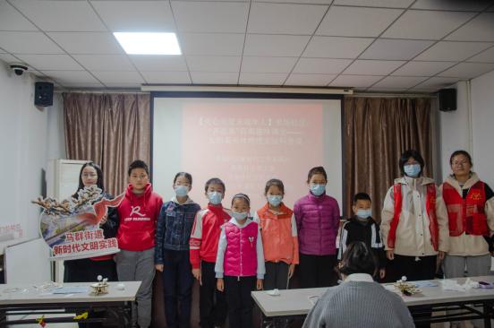 11月12日,南京市棲霞區(qū)馬群街道新時(shí)代文明實(shí)踐所、果場(chǎng)社區(qū)新時(shí)代文明實(shí)踐站站所聯(lián)動(dòng),在社區(qū)三樓活動(dòng)室,組織社區(qū)“齊益果”積分制志愿者、社區(qū)居民學(xué)校志愿服務(wù)力量、南京師范大學(xué)向心力志愿者及社區(qū)未成年人,開(kāi)展了一場(chǎng)“齊益果”假期趣味課堂——太陽(yáng)系天體物理實(shí)驗(yàn)科普課。