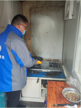 排查過程中,社區(qū)退役軍人志愿者重點(diǎn)檢查居民家中使用的燃?xì)怃撈?、燃?xì)夤芫€、連接卡口和燃?xì)庠罹叩仁欠翊嬖诎踩[患,通過檢查及時(shí)發(fā)現(xiàn)膠管和燃?xì)庠罹呃匣入[患問題,并利用“氣體測(cè)漏儀”,現(xiàn)場(chǎng)檢查了居民家中使用的燃?xì)怃撈亢驮罹哂袩o漏氣的安全隱患。對(duì)于排查中符合安全標(biāo)準(zhǔn)的灶具,志愿者們及時(shí)上報(bào)給社區(qū)網(wǎng)格員,聯(lián)系燃?xì)夤久赓M(fèi)更好安心管,確保城中村居民用氣安全。排查同時(shí),社區(qū)退役軍人志愿者還向陳家院居民開展安全防范措施宣傳。