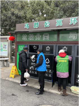 在馬群公寓垃圾分類小屋前,社區(qū)垃圾分類指導(dǎo)員正在忙碌著。“最近有不少新搬進來的租戶前來咨詢小區(qū)垃圾分類的相關(guān)事宜。”現(xiàn)場城市治理志愿者說道。