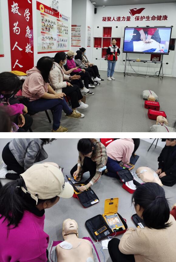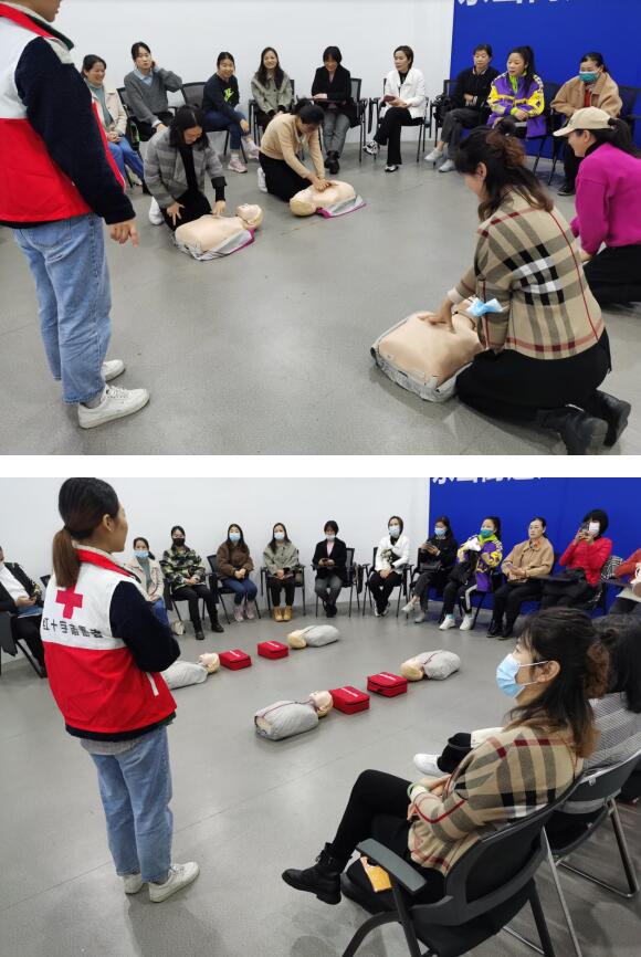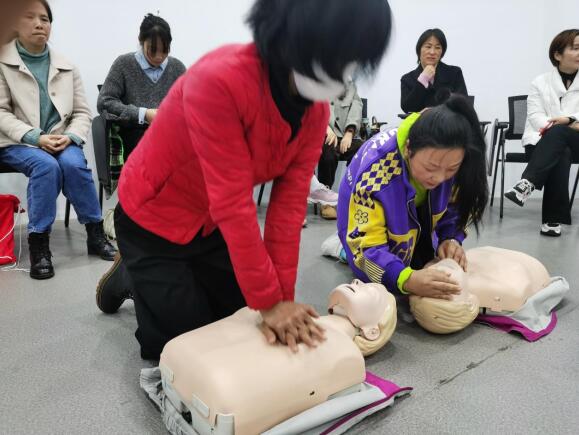 活動(dòng)中,工作人員通過實(shí)例講解、示范操作、現(xiàn)場(chǎng)演練等形式,圍繞常見急癥及意外傷害的急救處理、心肺復(fù)蘇、氣道梗塞急救、創(chuàng)傷救護(hù)等自救、互救知識(shí)進(jìn)行應(yīng)急救護(hù)知識(shí)培訓(xùn)。工作人員首先詳細(xì)講解了心肺復(fù)蘇的要點(diǎn)操作,現(xiàn)場(chǎng)為大家展示了胸外按壓、人工呼吸等心肺復(fù)蘇技術(shù)手法,告知大家遇到突發(fā)事件如何第一時(shí)間作出反應(yīng),如何抓住寶貴急救“黃金4分鐘”,并提醒大家要根據(jù)被救者的實(shí)際情況進(jìn)行施救,避免造成二次傷害。