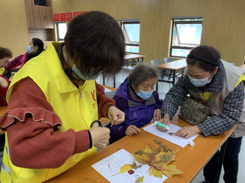 活動(dòng)中,社區(qū)殘協(xié)工作人員和志愿者將收集到的各種各樣的樹(shù)葉逐一發(fā)放到大家手中,引導(dǎo)大家充分發(fā)揮自己的想象力制作樹(shù)葉貼畫(huà)。大家以落葉為素材,充分發(fā)揮想象力進(jìn)行粘貼,將各式各樣的樹(shù)葉進(jìn)行搭配、粘貼、裝飾,組合成精美和奇特的作品。