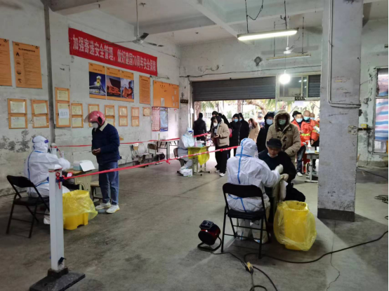 此前,果場社區(qū)的核酸采集點是室外場所,在風(fēng)雨天氣時,前來排隊做核酸采集的居民往往只能宣傳在雨中排隊。盡管部分核酸檢測點有帳篷遮蓋,居民仍表示陰雨天很不方便。對此,社區(qū)與轄區(qū)新業(yè)態(tài)單位積極商議,臨時借用新業(yè)態(tài)單位提供的空置庫房作為室內(nèi)核酸采樣場地。快遞單位負(fù)責(zé)人表示,“作為社區(qū)居民的一分子,我也要為社區(qū)防疫出一份力。”