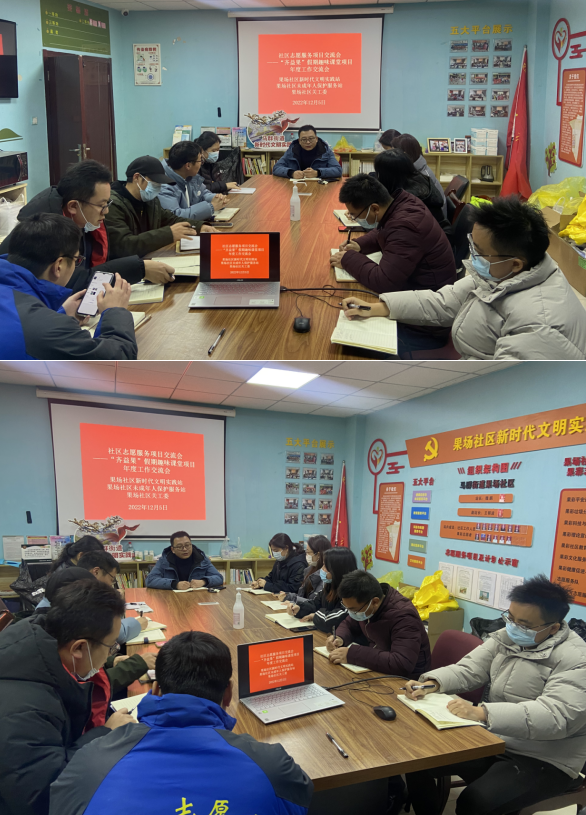 2022年12月5日下午,南京市棲霞區(qū)馬群街道果場社區(qū)關(guān)工委、未成年人保護(hù)服務(wù)站,依托社區(qū)新時(shí)代文明實(shí)踐站文化服務(wù)平臺,邀請項(xiàng)目合作伙伴南師大物科院“向心力”志協(xié)學(xué)生代表,組織“齊益果”積分制志愿者在社區(qū)文明實(shí)踐文化陣地召開本年度“齊益果”假期趣味課堂項(xiàng)目年度工作交流會。會議回顧總結(jié)本年度社區(qū)關(guān)心關(guān)愛未成人的工作內(nèi)涵,并制定該項(xiàng)目年度總結(jié)活動的行動方案。