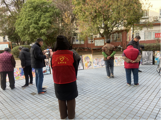 為不斷豐富社區(qū)居民文化生活內(nèi)涵,弘揚(yáng)熱愛生活發(fā)現(xiàn)美好的社區(qū)文化,2022年12月6日起,南京市棲霞區(qū)馬群街道新時(shí)代文明實(shí)踐所與果場(chǎng)社區(qū)新時(shí)代文明實(shí)踐站進(jìn)行站所聯(lián)動(dòng),依托社區(qū)新時(shí)代文明實(shí)踐站文化服務(wù)平臺(tái),組織“齊益果”積分制志愿者、黨員、居民在轄區(qū)天悅花園、馬群公寓小區(qū)、陳家院城中村內(nèi)開展“社區(qū)繪畫展覽”志愿活動(dòng)。