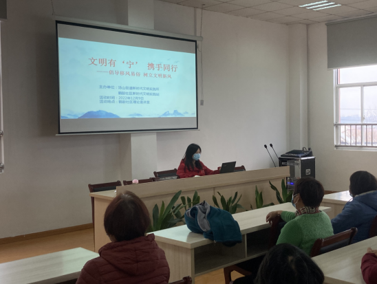為進(jìn)一步推動(dòng)移風(fēng)易俗,破除陳規(guī)陋習(xí),引導(dǎo)轄區(qū)居民樹立科學(xué)的理想信念,建立勤儉節(jié)約、文明健康的生活方式。12月9日,南京市江寧區(qū)湯山街道鶴齡社區(qū)新時(shí)代文明實(shí)踐站開展“文明有‘寧’ 攜手同行——倡導(dǎo)移風(fēng)易俗 樹立文明新風(fēng)”主題宣講活動(dòng)。