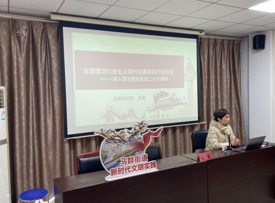 12月12日下午,南京市棲霞區(qū)馬群街道青馬社區(qū)新時代文明實踐站理論宣講平臺組織社區(qū)黨員干部在社區(qū)三樓黨員活動室開展“學習貫徹黨的二十大精神區(qū)委宣講團宣講報告會”。區(qū)委宣講團成員、區(qū)委黨??崎L朱慧同志擔任本次宣講人,迅速掀起學習貫徹黨的二十大精神的熱潮。