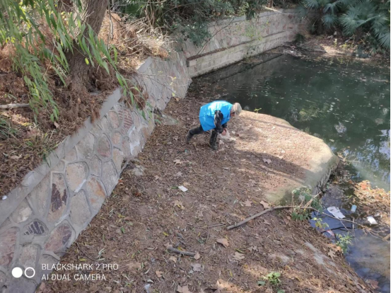 清晨,藍(lán)馬甲在日常巡查河道時發(fā)現(xiàn)河邊水草上面漂浮著很多落葉垃圾,嚴(yán)重影響周邊環(huán)境。發(fā)現(xiàn)該情況后,藍(lán)馬甲們立即拿著笤帚、袋子、火鉗、網(wǎng)兜來到河道邊,打撈河道里的漂浮物,撿拾河岸邊的垃圾和落葉,忙的熱火朝天。在他們的辛勤付出下,原本漂浮在水面上的水葫蘆、浮萍、水草及河面河岸垃圾,都已打撈清除完畢,部分生活垃圾也進(jìn)行了無害化處理。經(jīng)過他們的清理,河面清澈見底,河道兩側(cè)垃圾不見蹤影,環(huán)境更加整潔干凈。