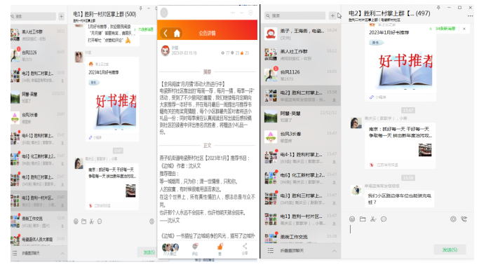 微信群內(nèi),居民紛紛點(diǎn)贊社區(qū)的貼心分享,互相交流著自己閱讀后的感受體會(huì),對(duì)于文筆優(yōu)美的段落還會(huì)著重進(jìn)行推薦。本次線上全民閱讀分享會(huì)大大激發(fā)了居民的閱讀興趣,豐富了社區(qū)居民的生活,進(jìn)一步營(yíng)造了“好讀書、讀好書、讀書好”的濃厚氛圍。