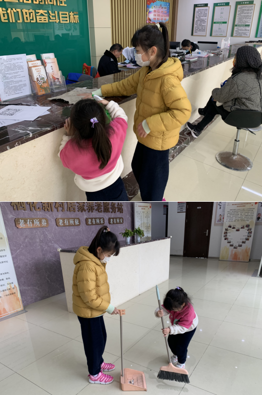 接著,青少年們主動拿起掃帚、拖把、抹布,將社區(qū)養(yǎng)老服務(wù)站和便民服務(wù)大廳打掃干凈。