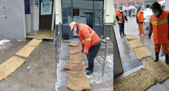 15日白天雪漸止、人未歇,針對巡查中發(fā)現的部分路段融雪后出現積水現象,為提前規(guī)避16-17日低溫冰凍天氣對群眾出行的影響,城管辦以積雪結冰區(qū)域為重點,協調環(huán)衛(wèi)人員集中掃雪除冰,對集鎮(zhèn)農貿市場出入口、公廁瓷磚地面鋪設地墊、草墊等,有效避免結冰打滑,為民提供貼心服務。